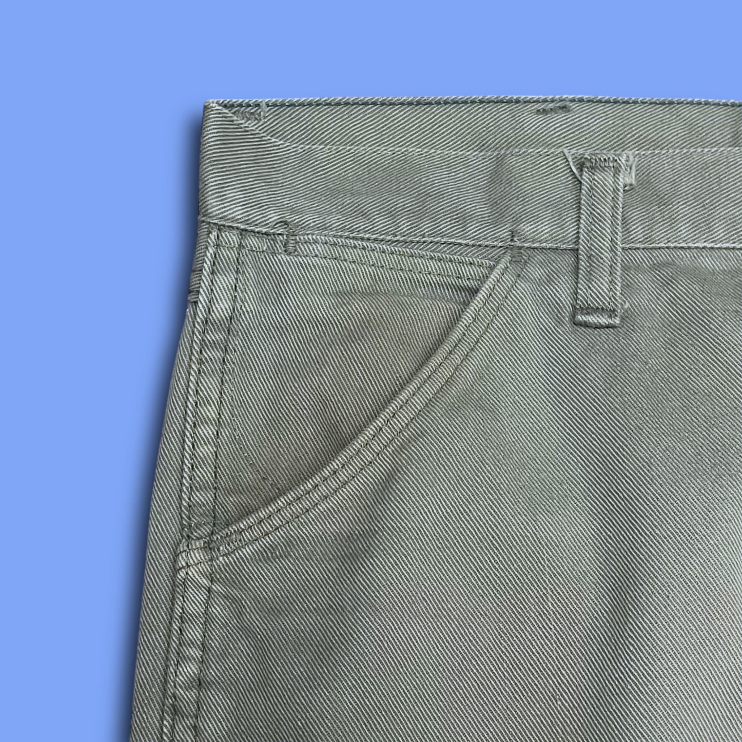 ・またフロントボタン下の生地が破れたようで雑にリペアされています。(履いてしまえば隠れるのでそこまで気にはならないかと思います)