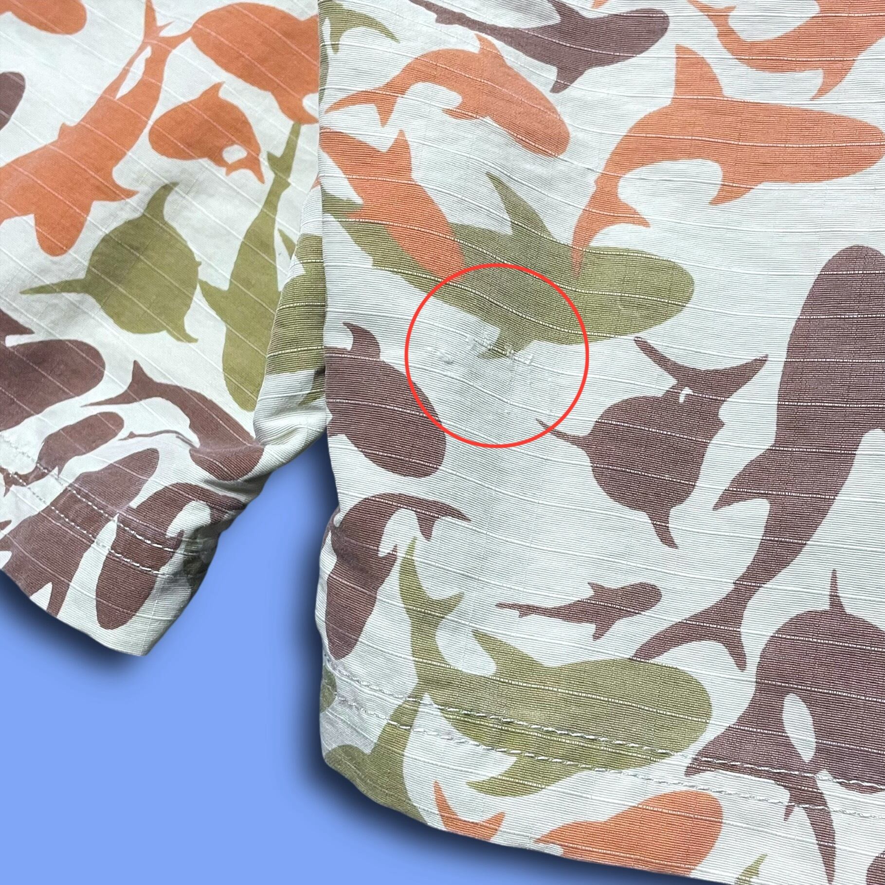・右サイドに1箇所リペア(裏面からテープを貼り付けてある)があります。(写真11.12枚目)