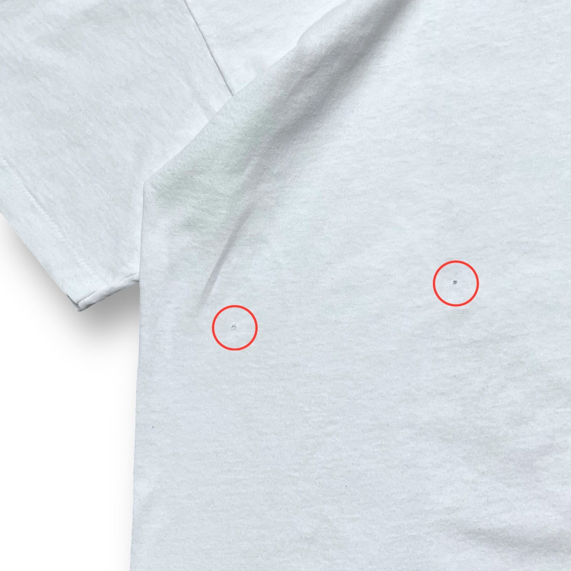 ・腹部に1箇所、右袖に1箇所、背面に3箇所ピンホールがあります。(写真9-12枚目)