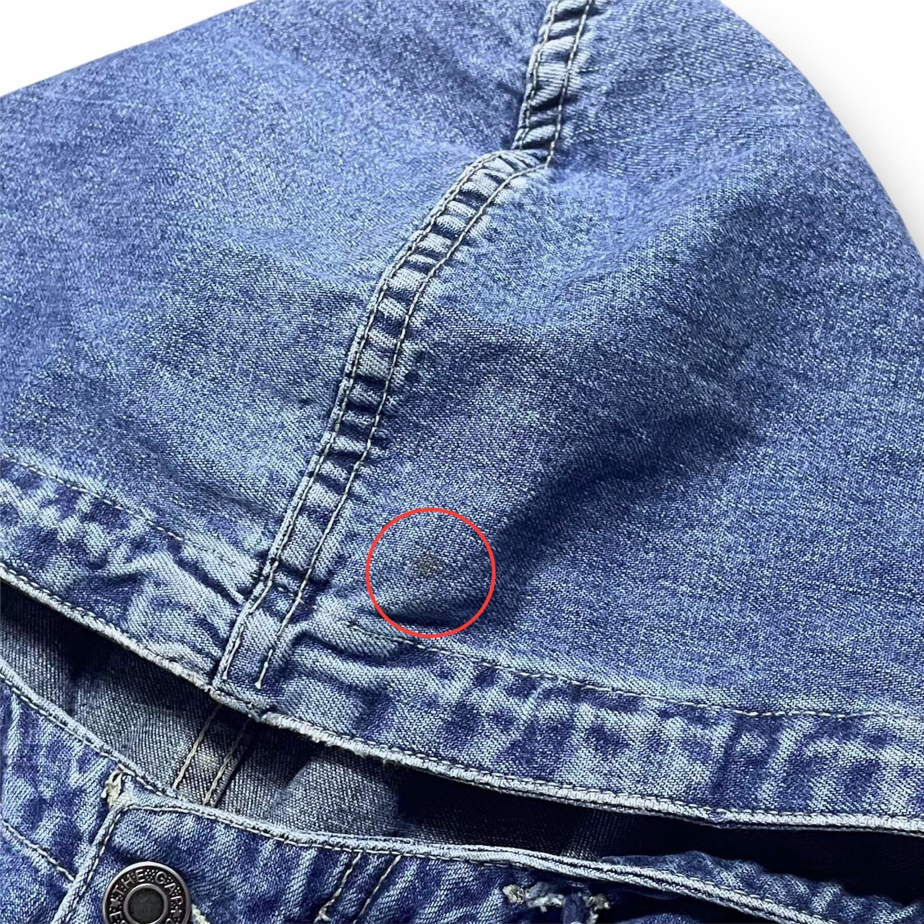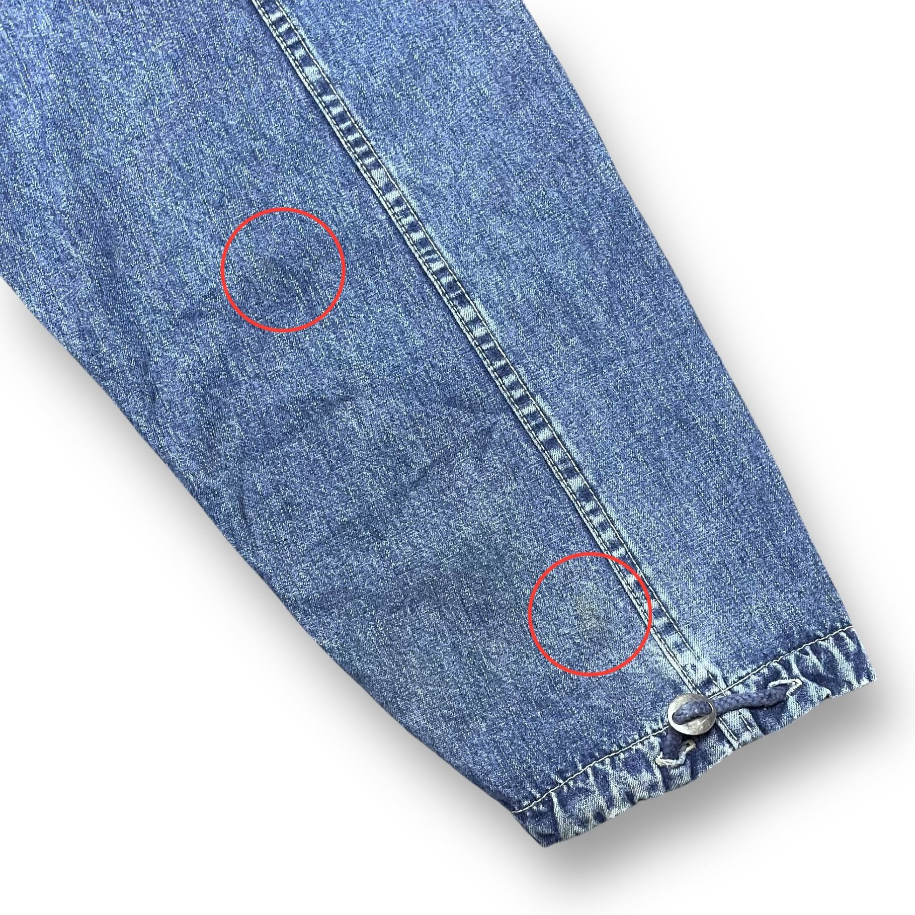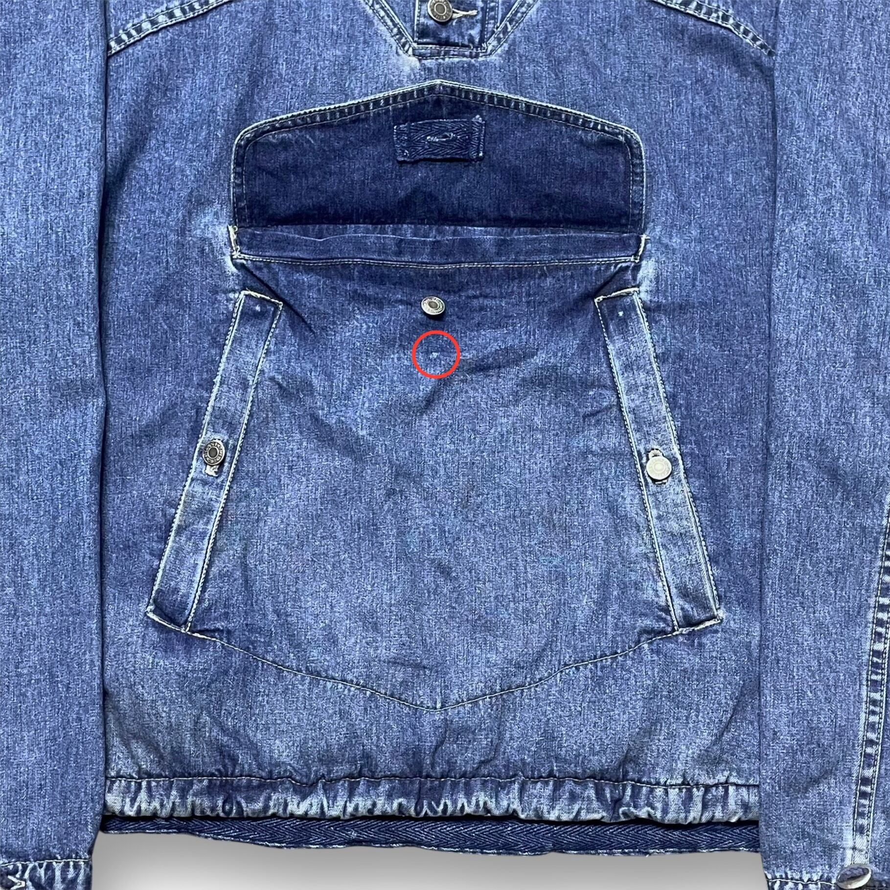 ・袖や腹部のポケット、背面、フードに薄い汚れがあります。(写真の赤丸部分)