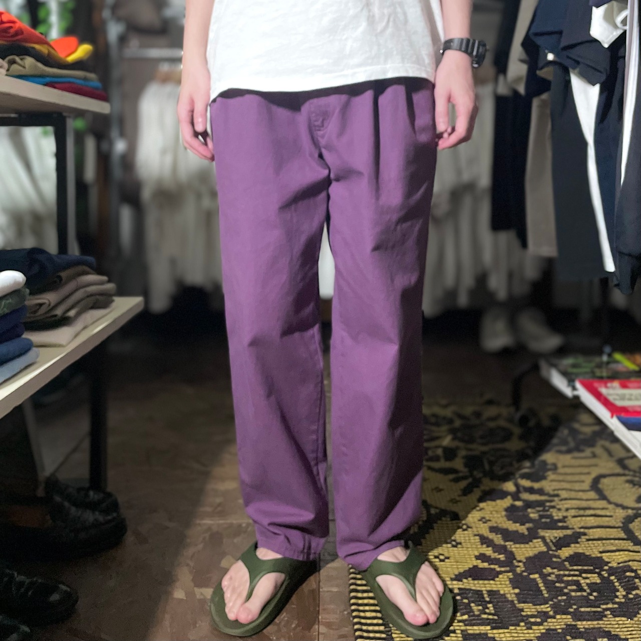 ・腿周りがゆったりとした2タック仕様で、膝から裾にかけて少しテーパードの効いた90年代らしいシルエット。