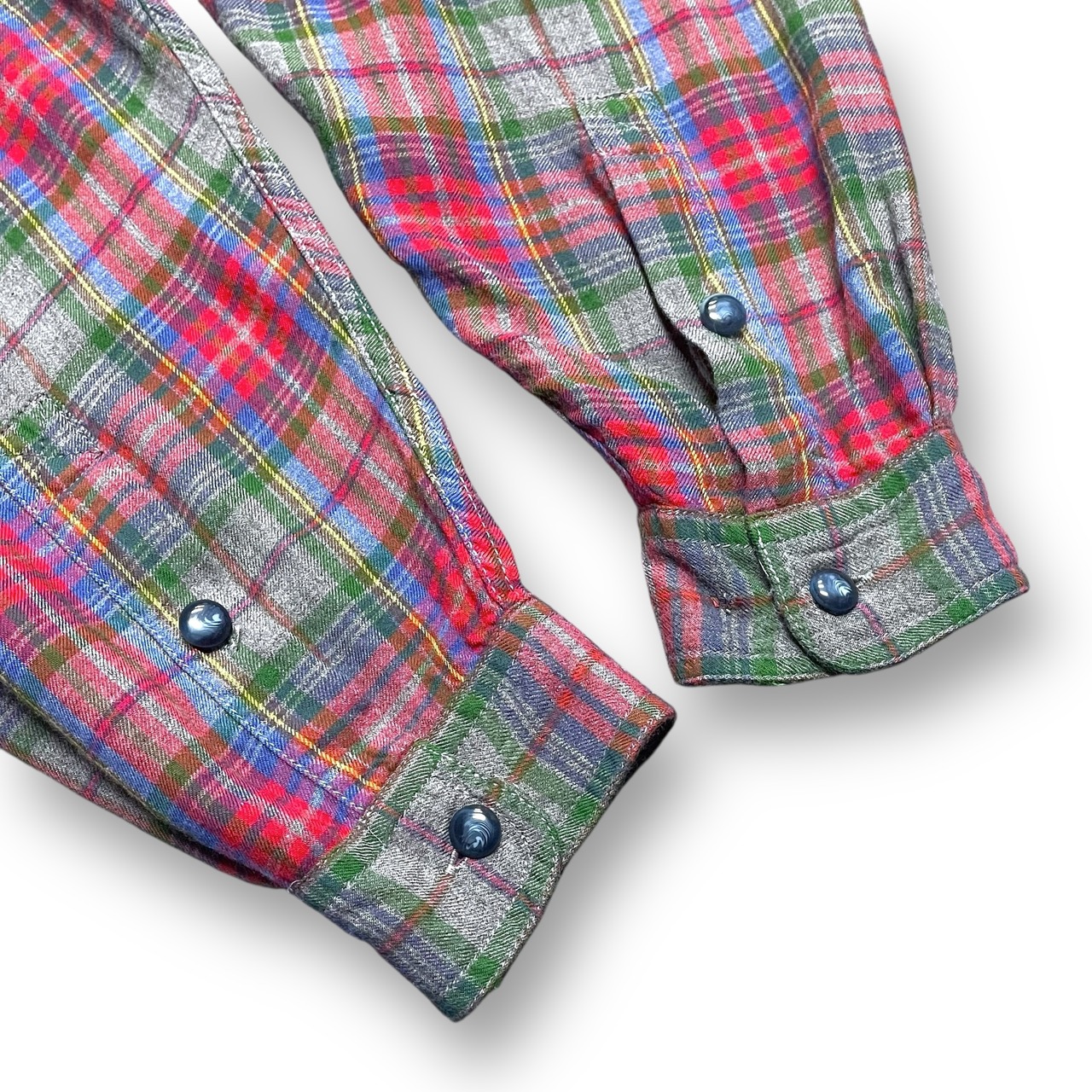 ・レッド×ブルー×グレー×グリーン×イエローのタータンチェック