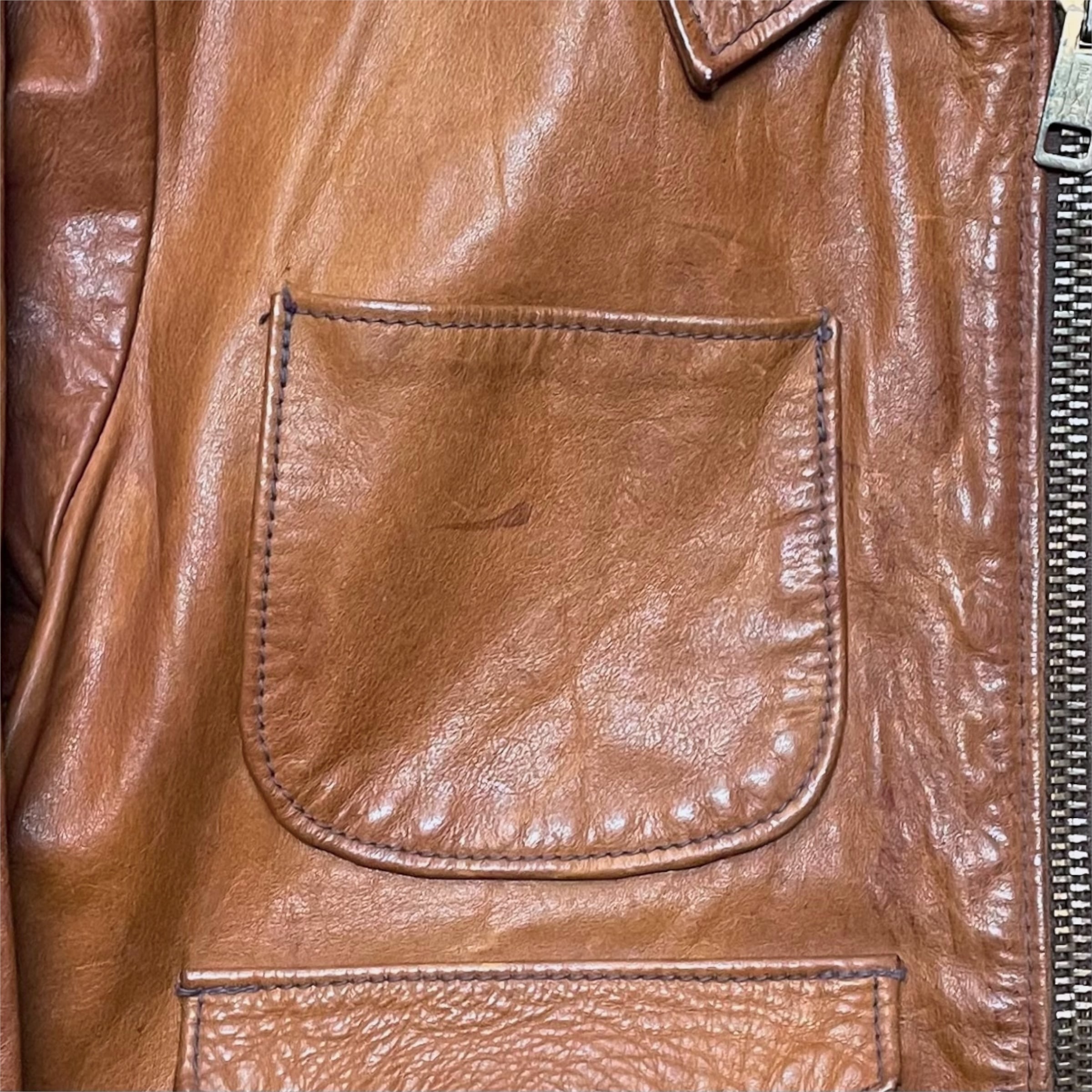 ・その他レザー素材特有の使用感や擦れ、小さな雨染み等ありますが、レザー自体のコンディションは非常に良く、これからも長くご着用頂けるかと思います。