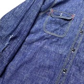 ・通常のシャンブレーよりも肉厚で、デニムシャツの中間に位置するようなタフな質感が特徴。