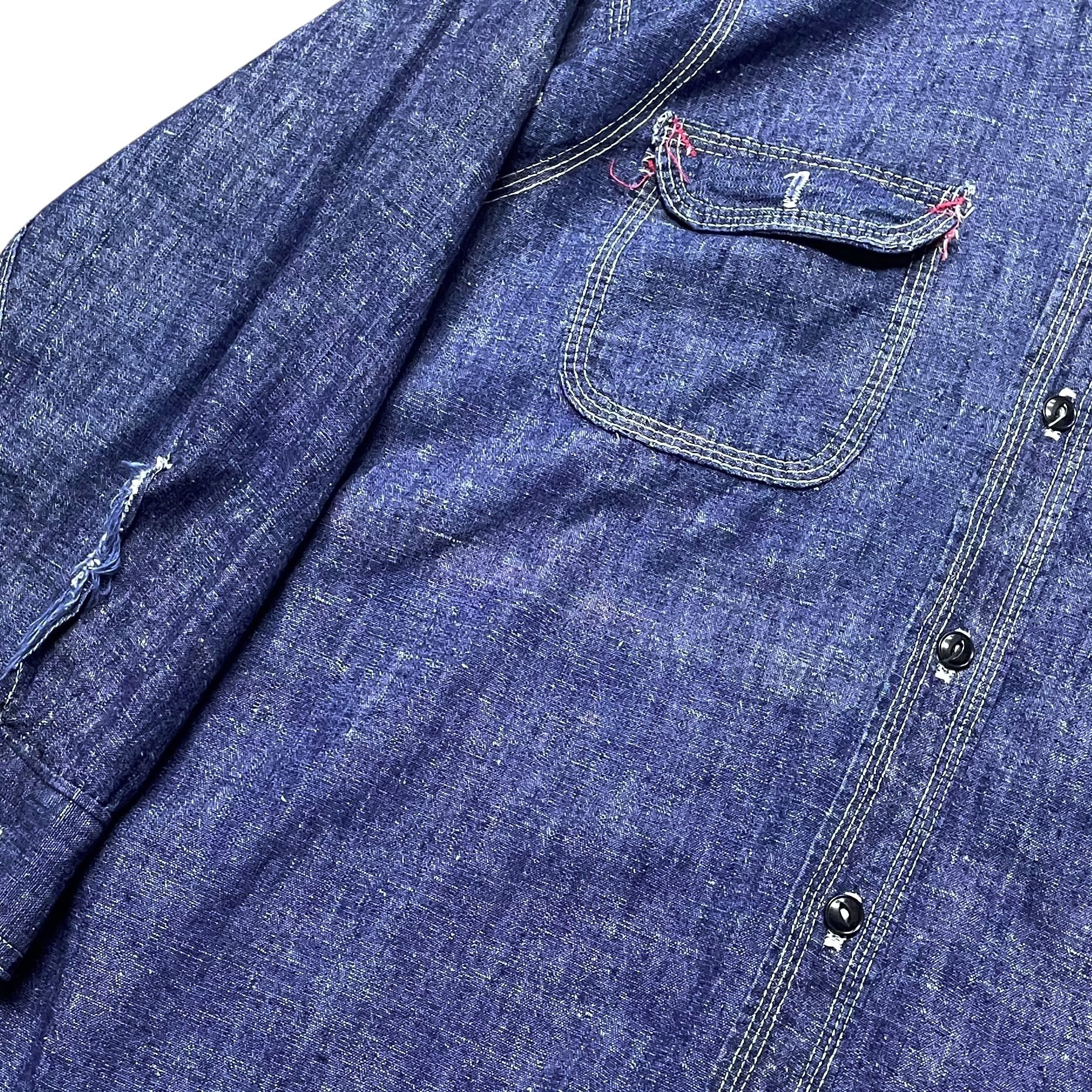 Rare!! 1940~50's Mexican Vintage Chambray Shirt with Ventilation Hole (メキシカン ビンテージ ベンチレーションホール シャンブレーシャツ)