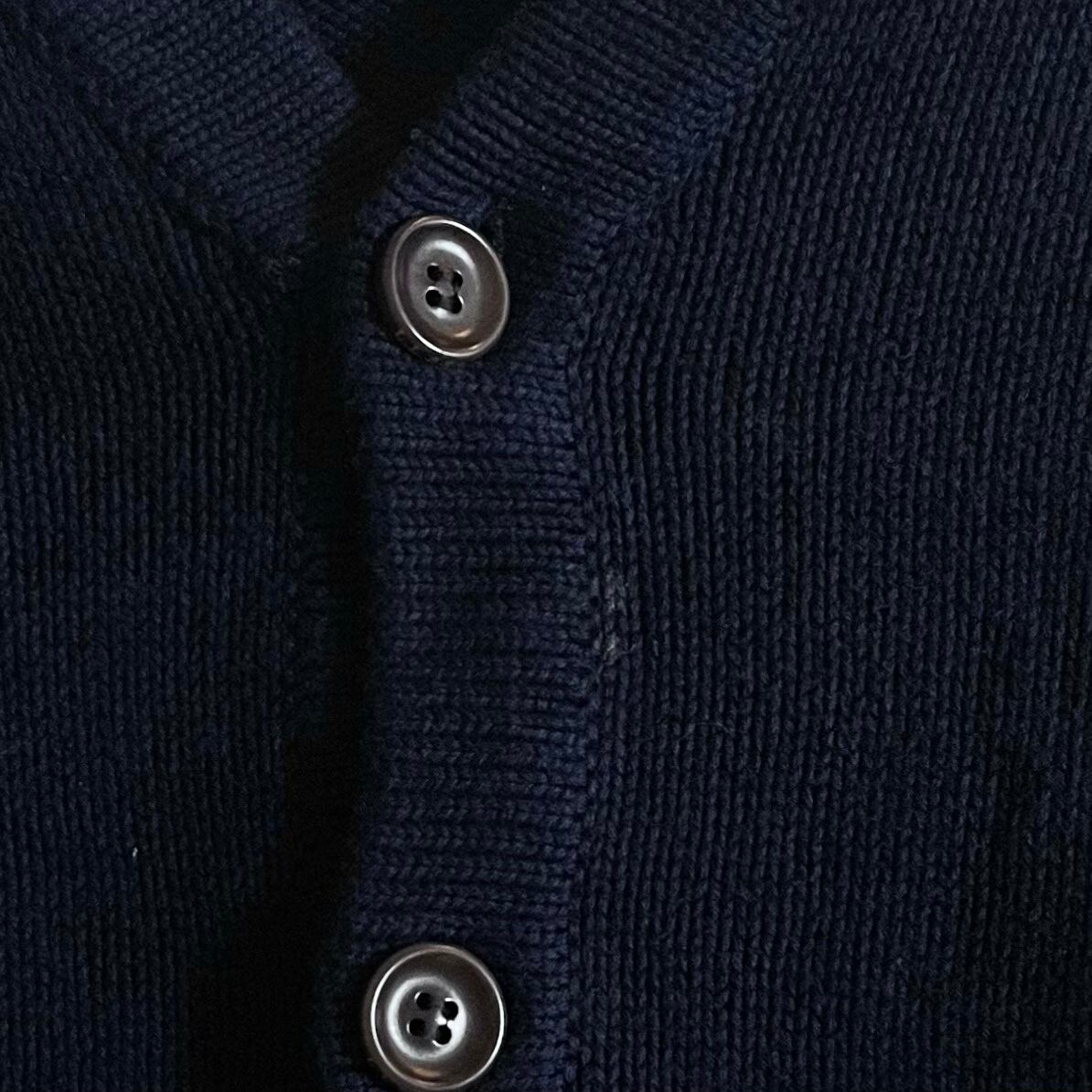 ・第一ボタン下と左袖後ろ側に薄らと汚れがあります。その他、とくに目立つ汚れダメージもなく良好です。
