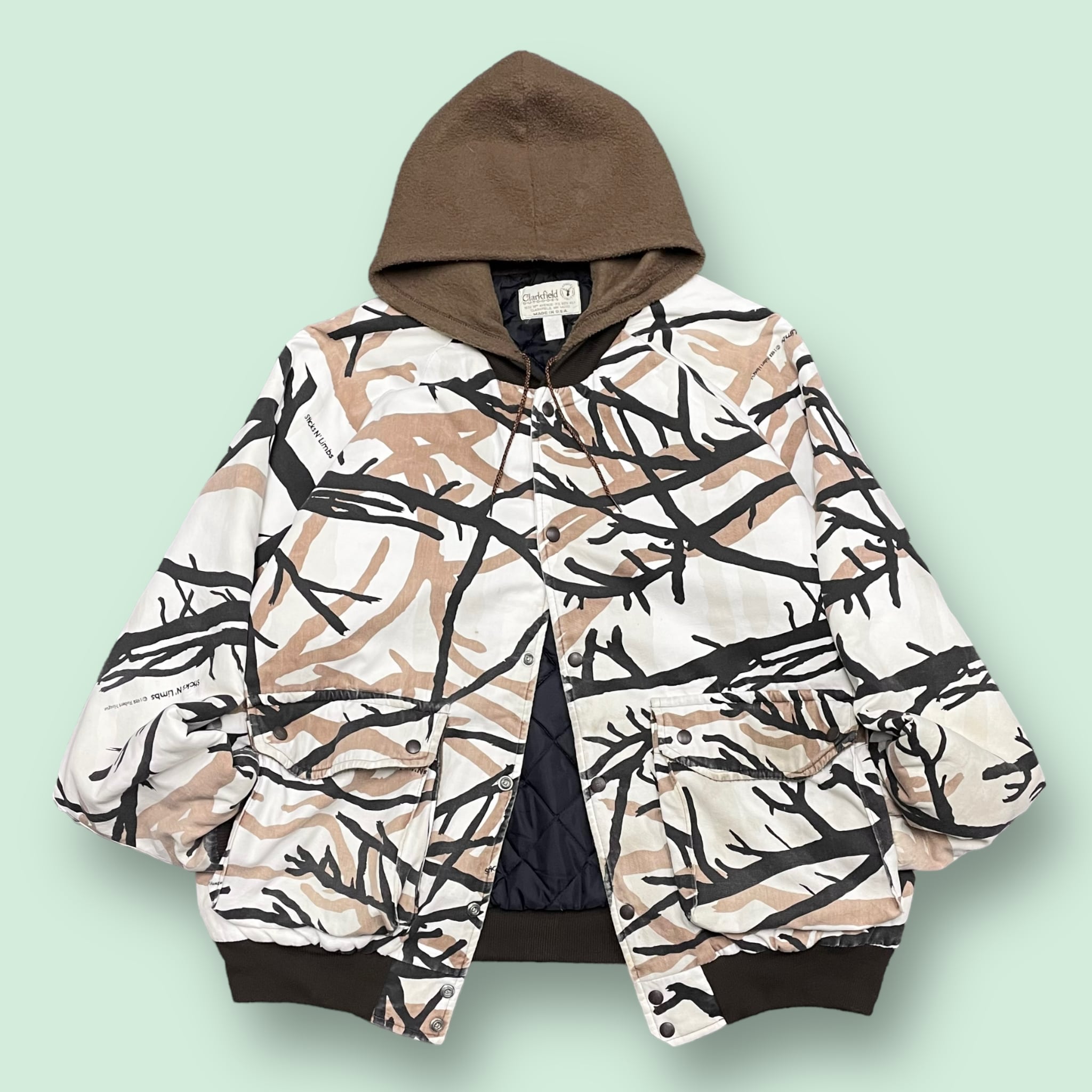 ・"Sticks N' Limbs ©︎1988 Robert Hoague"のプリント入り。プレデターカモに酷似した「枝カモ」と呼ばれる珍しいカモフラ柄の一点。(初期のSupremeがサンプリングしてバケットハットを作っていました)