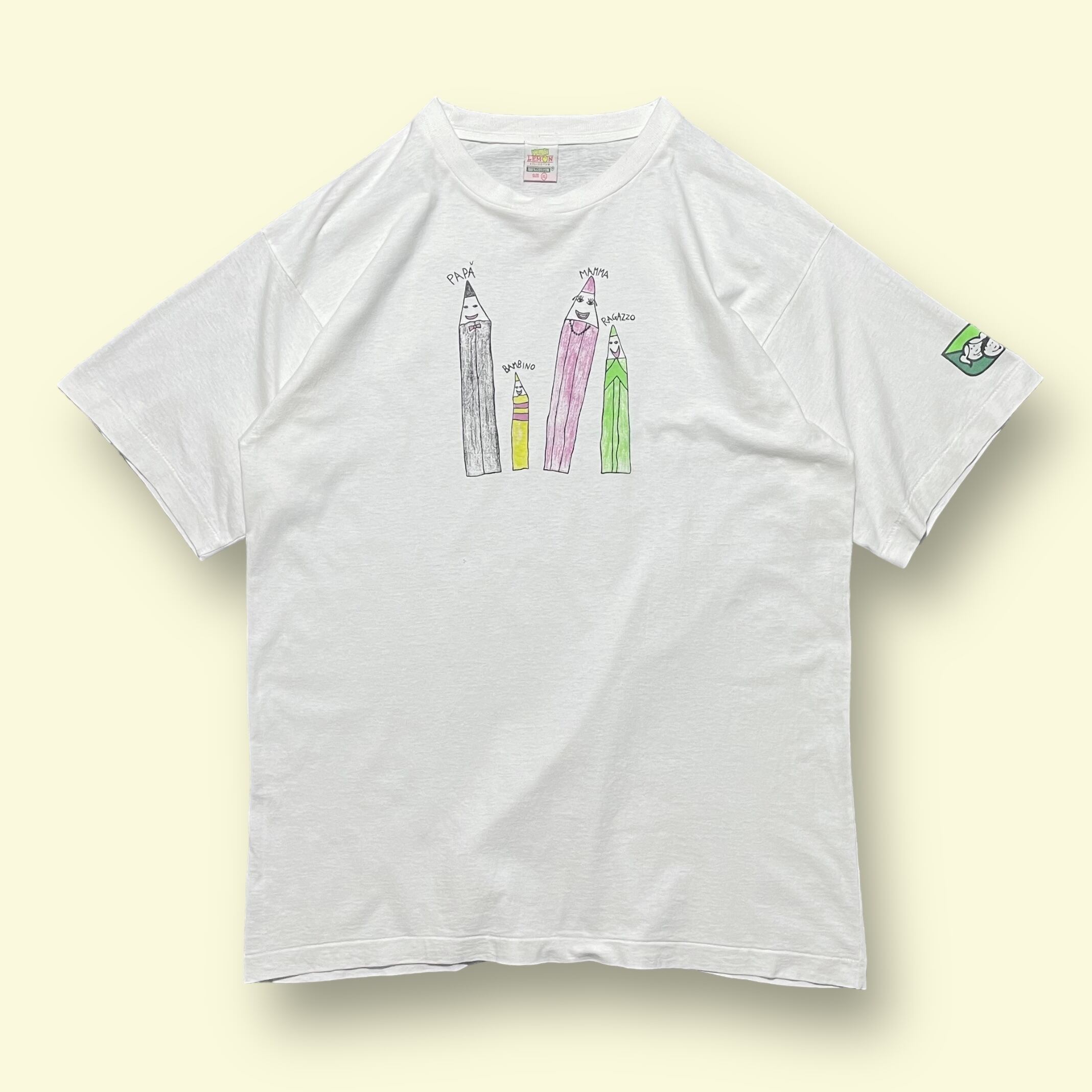 ・色鉛筆の家族がプリントされています。プリント上の文字を見る限りイタリアのものかと思われます。