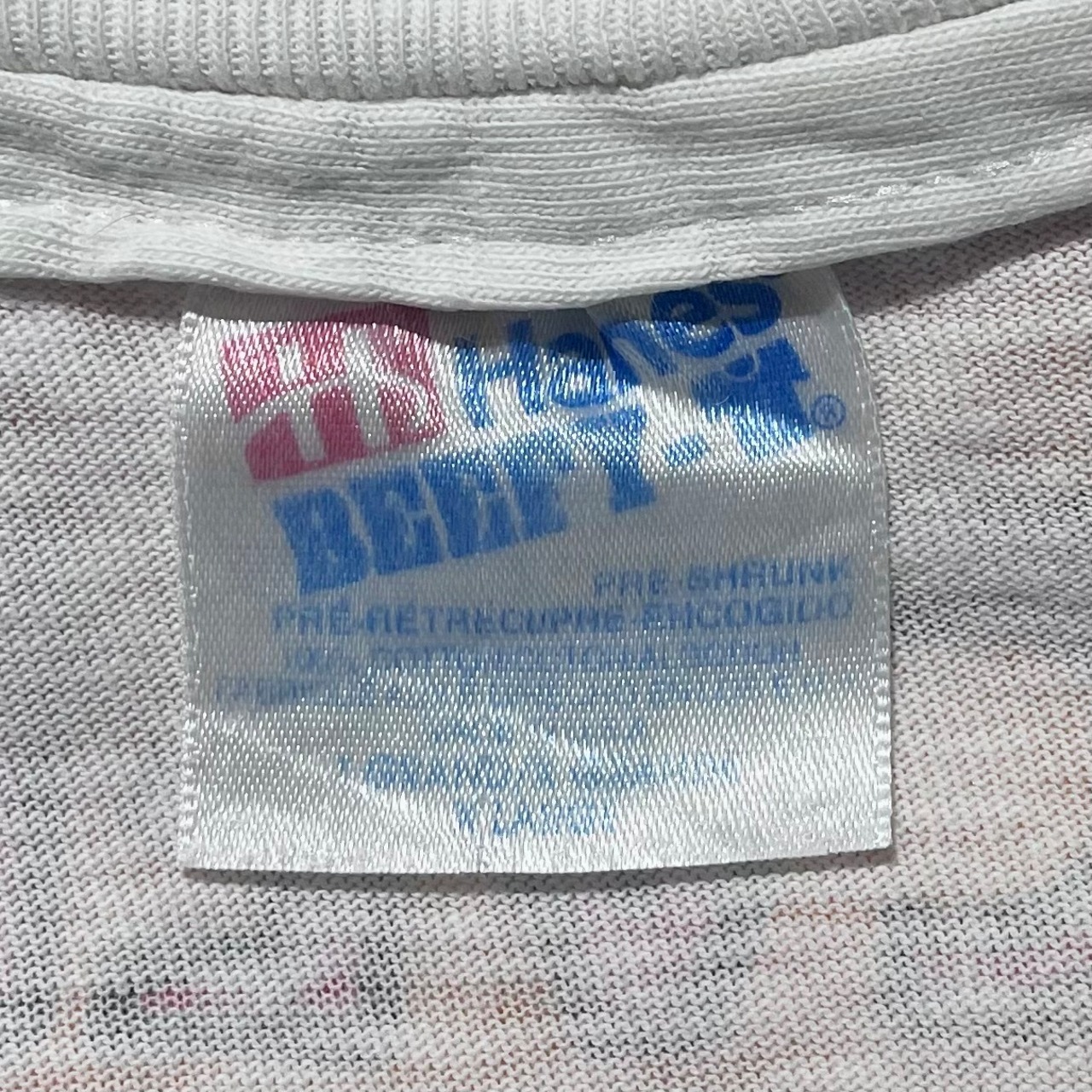 ・92コピーライト、USA製"Hanes"ボディ、袖裾ともにシングルステッチ仕上げです。