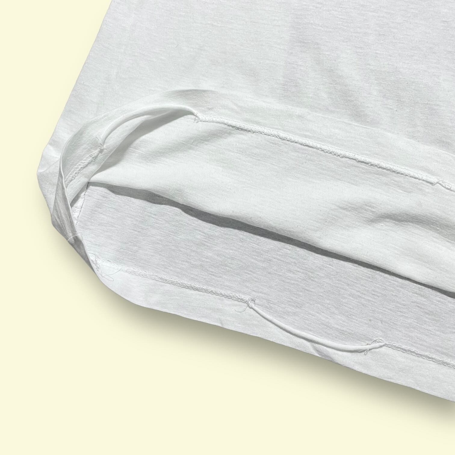 ・サイドシームあり、袖裾ともにシングルステッチ仕上げです。
