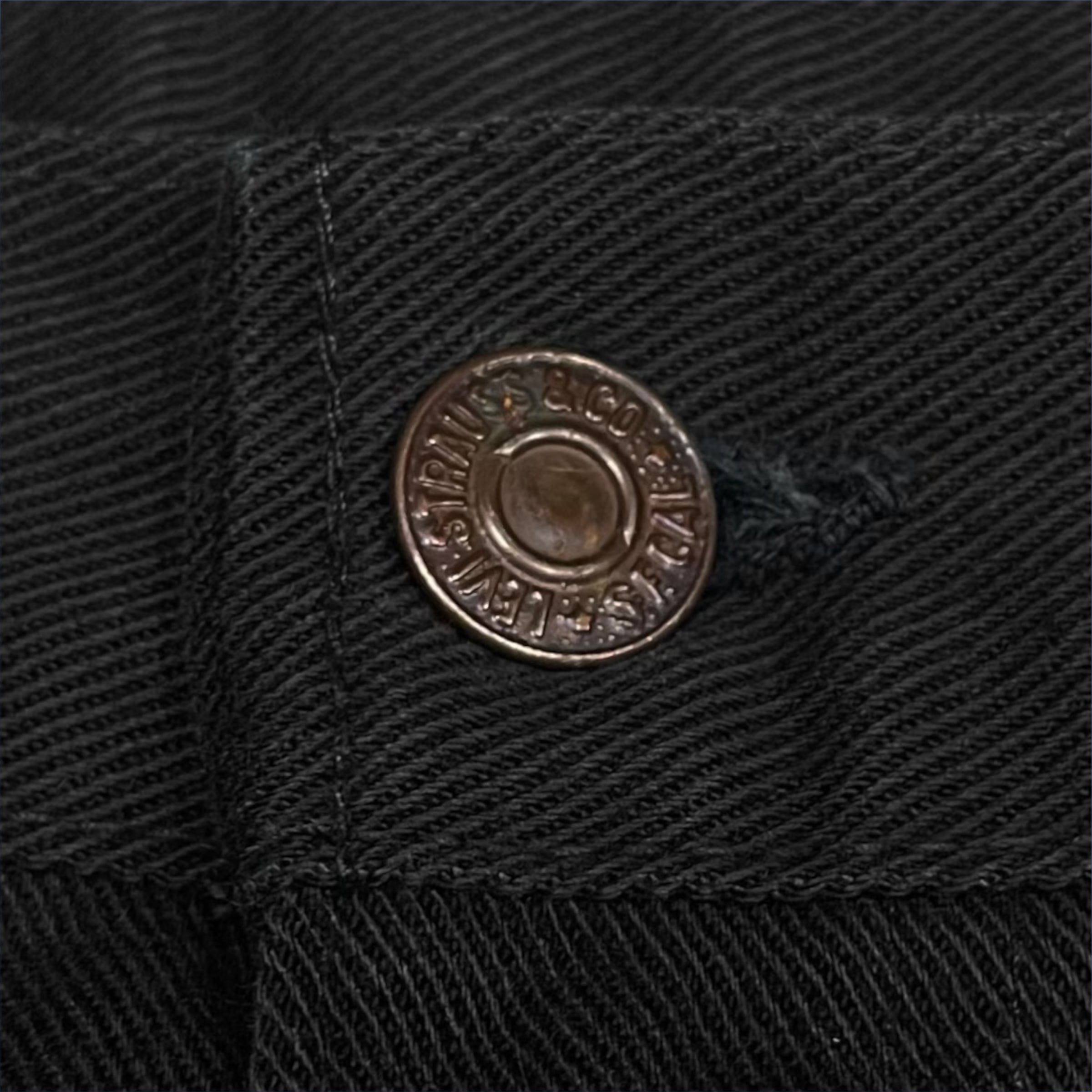・金タブ"E"、42TALONジップ、トップボタン裏521刻印、スレーキにスタンプあり。